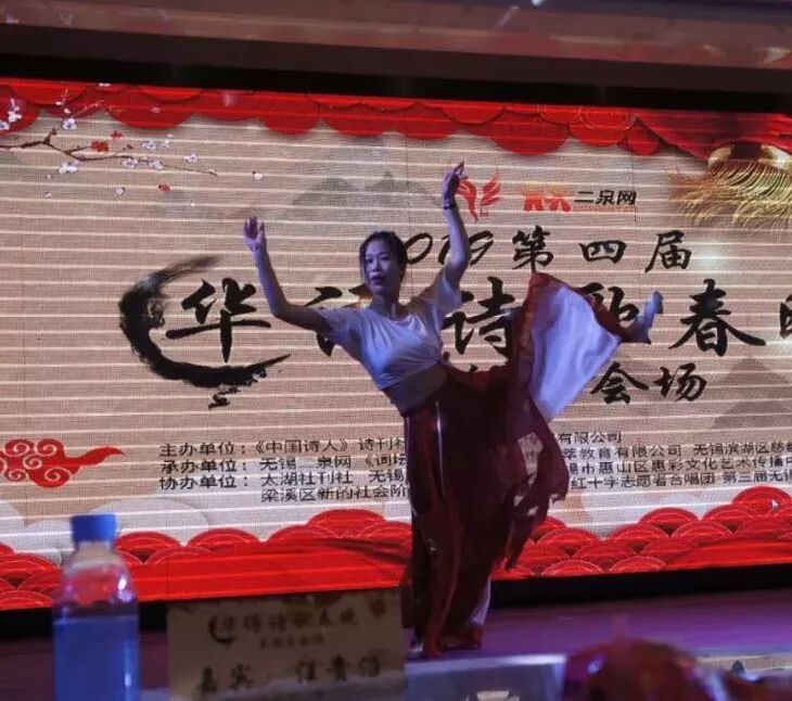 最后,本次活动的导演杨红代表第四届华语诗歌春晚无锡会场会务组全体成员及本次活动的总策划安娟英向所有到场的嘉宾、所有的演职人员及对本次活动给予支持的单位及个人真诚致谢,并对有突出贡献的个人颁发了奖杯。