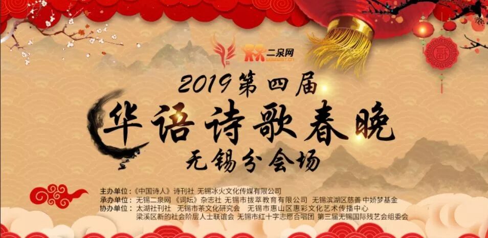 本次春晚由《中国诗人》诗刊社,无锡冰火文化传媒有限公司主办,无锡二泉网、词坛杂志社、太湖社刊社承办以及多家单位联合举办。