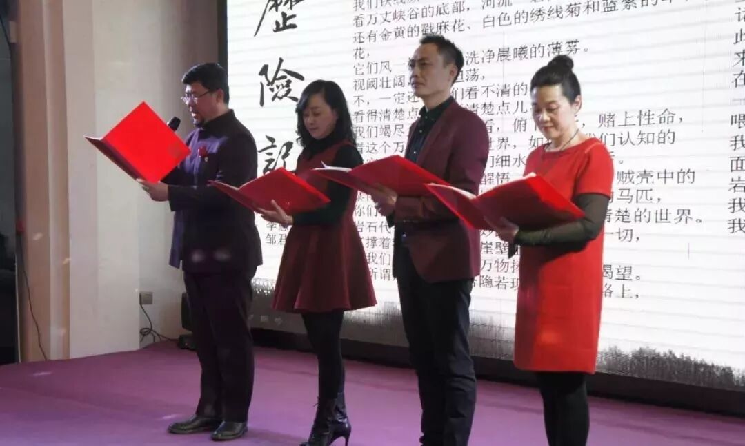 朗诵嘉宾李恩忠 王义淮 邹君燕 胡爱红共同演绎了诗人阿依古丽的作品《历险记》将会场气氛再次推向高潮。